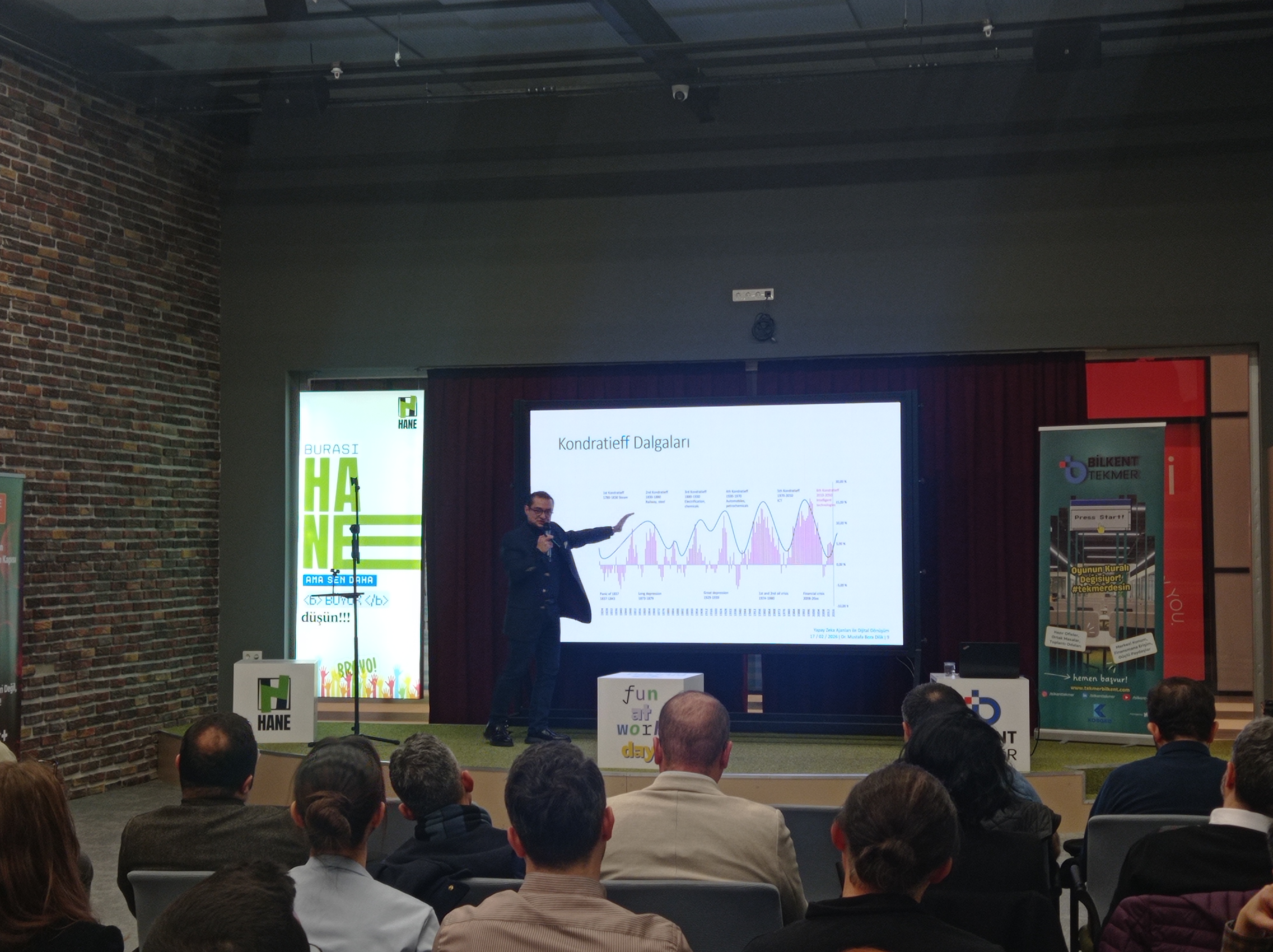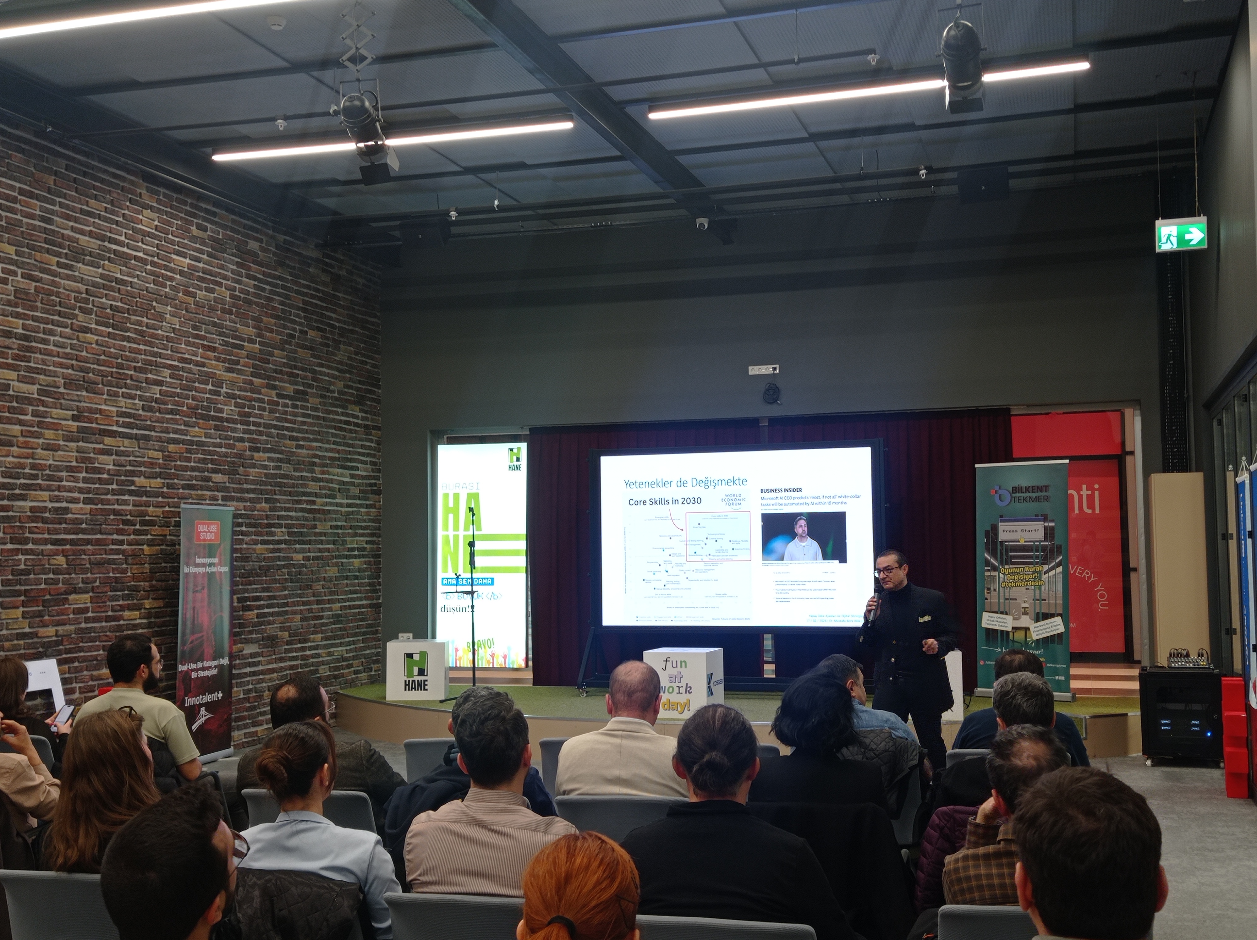 Yapay zekanın bizlerin hayatını, işlerini, kararlarını nasıl etkilediği ile ilgili, Bora Dilik, Halil ERMAN ve Doğuş Yüksel ’in değerlendirmelerini dinleme fırsatı bulduk. Sadece teknolojiyi değil nasıl çalışacağımızı, nasıl karar vereceğimizi, hatta nasıl düşündüğümüzü ve ürettiğimizi konuştuk.